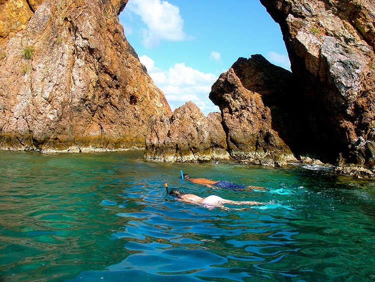 While traveling through, you’ll get to take in the gorgeous coral that lines the cave walls. The two caves, where legend has it pirates hid their gold during a storm, go so far back that by the end you’re swimming in almost complete darkness, simulating a night dive. This is a great spot for travelers who want to take their adventure to the next level. Be sure to stop here early to avoid the crowds.